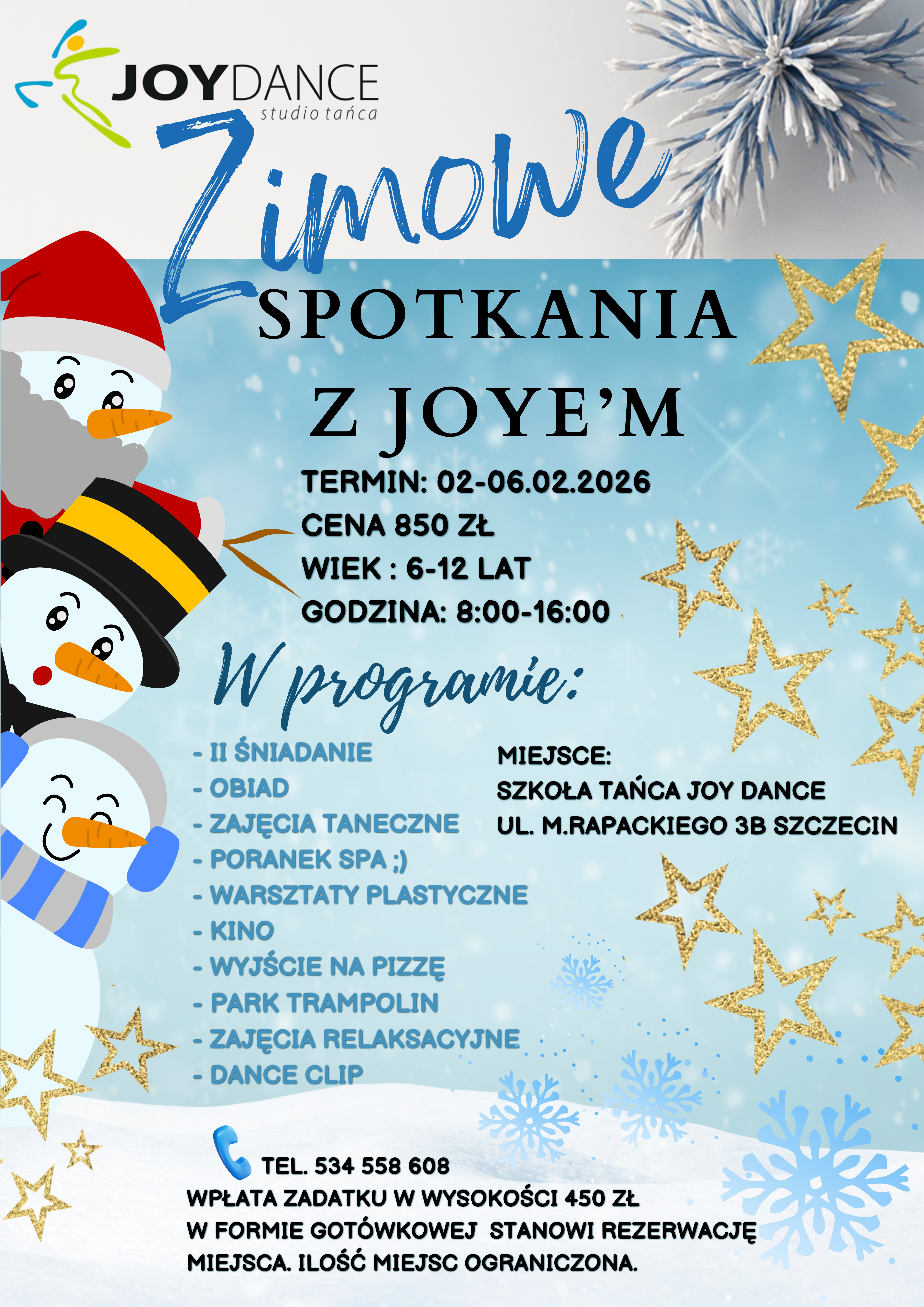 Wraz z opłatą za szkolenie należy dostarczyć podpisany Regulamin Szkolenia Tanecznego WINTER JOY 2026.